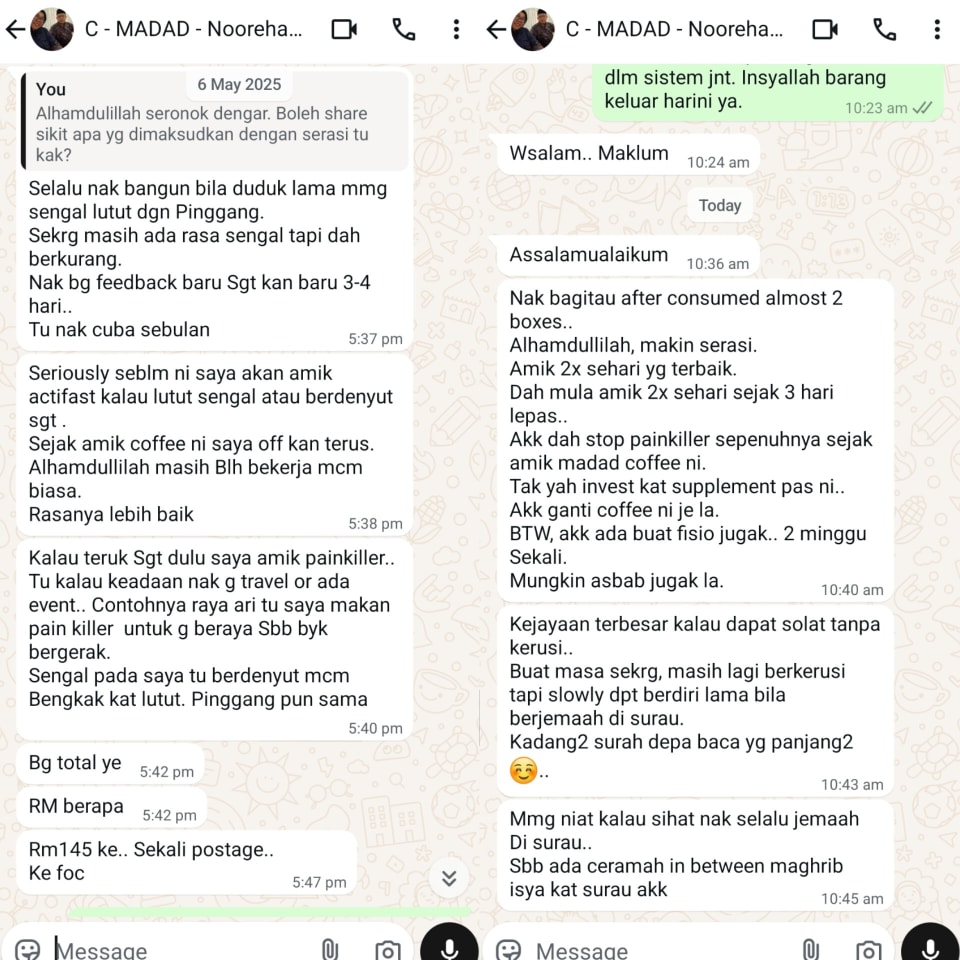 “Kalau saya dah beli MADADLAB COFFEE, dah amalkan dengan konsisten tapi saya masih tak puas hati sebab tak ada sebarang perubahan positif?”
